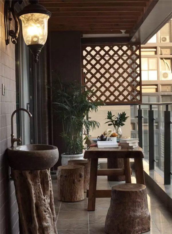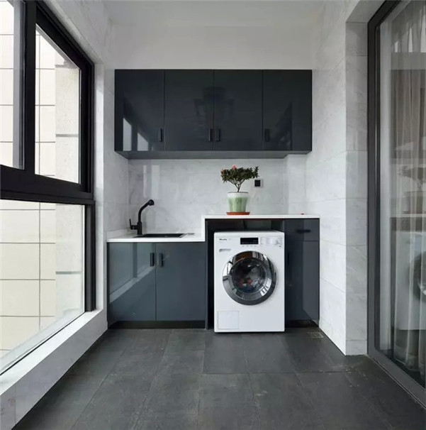 把阳台变成盥洗区, 并不是说在这里洗脸等,而是把清洗抹布、淘洗墩布、晾晒衣物等家务从卫生间或者厨房移置到阳台 。