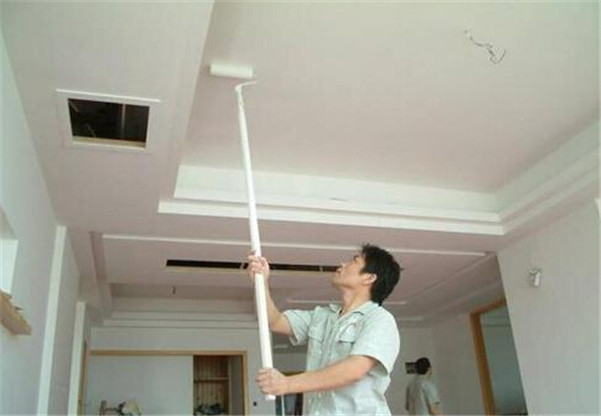 先用滚刷将大面积的部分涂刷完成,顺序为先吊顶、线条,后墙面。然后再用笔刷进行修补,特别是墙壁与角线、木柜、隔板等的接缝位置和墙壁的转角处。墙面上漆至少要上两遍,第一遍涂料可加5—10%的水,方便墙壁吸收,第二遍面漆可不加水,与第一遍涂层有一定的间隔时间。墙漆干透后,用砂纸对墙面进行打磨,以减少墙面刷痕。