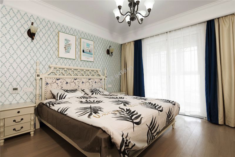 美式风格三居室120平米卧室壁纸装修设计效果图