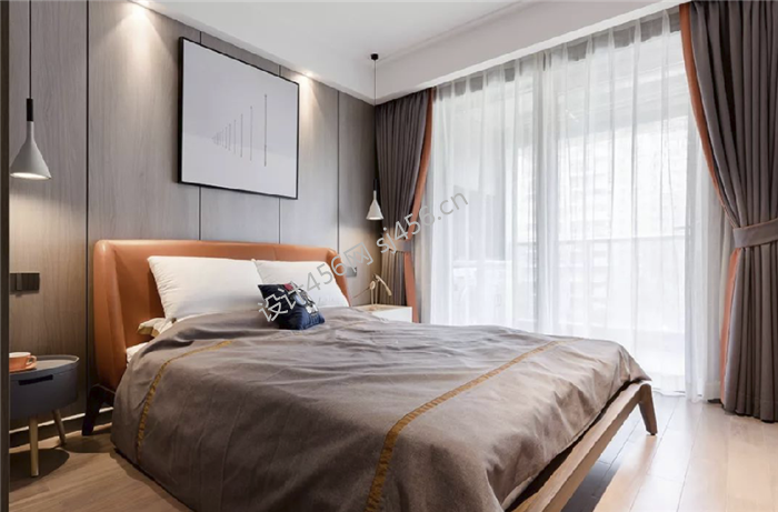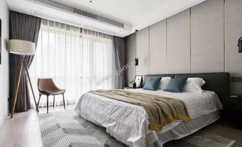 现代风116平三居室卧室背景墙装修效果图