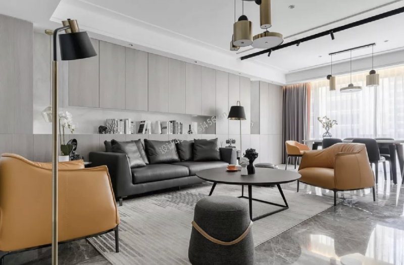现代风116平三居室客厅背景墙装修设计图