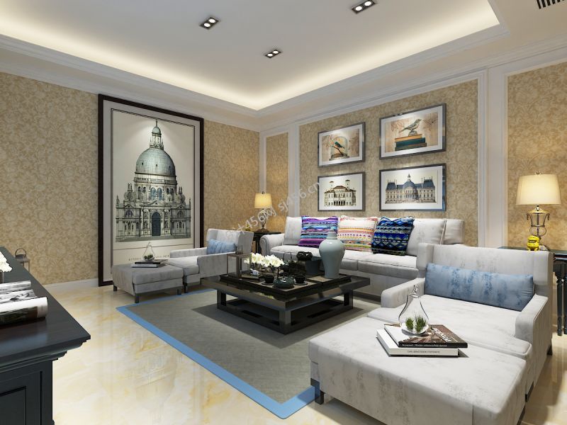 欧式风格115平米三居室客厅背景墙装修效果图