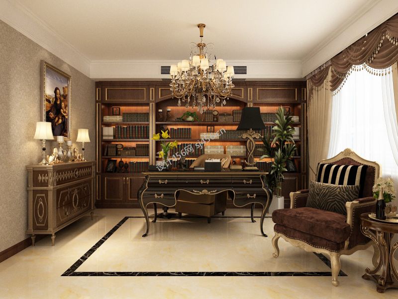 欧式风格115平米三居室书房书柜装修效果图