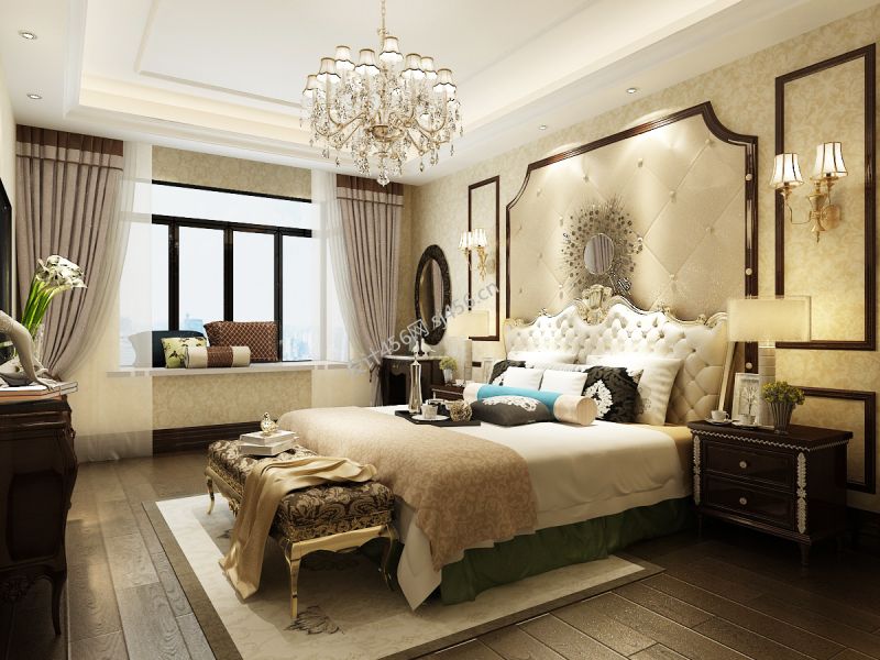 欧式风格三居室115平米卧室背景墙装修效果图