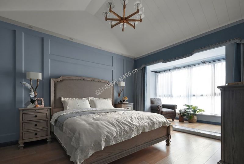 北欧风132平米三居室卧室背景墙装修效果图