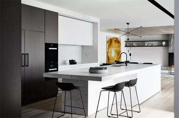 开放式厨房是别墅中的典型户型,40㎡以上的大厨房,试着做成开放式,一个区域解决了下厨和进餐。