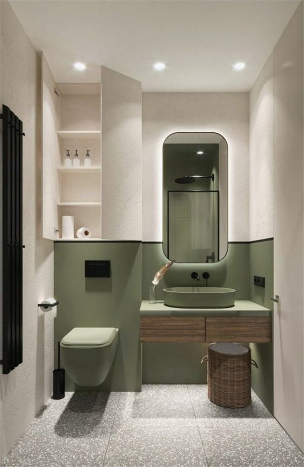 壁龛和壁柜是除了悬挂式置物架、台盆柜外,一种很有创意的置物方式,在墙壁上内凹置物不仅能保证卫生间的设计,还能避免像铁艺置物架生锈等后期使用问题,保持空间的整洁、美观。