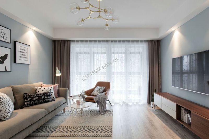 102平北欧风格三居室客厅背景墙颜色装修效果图