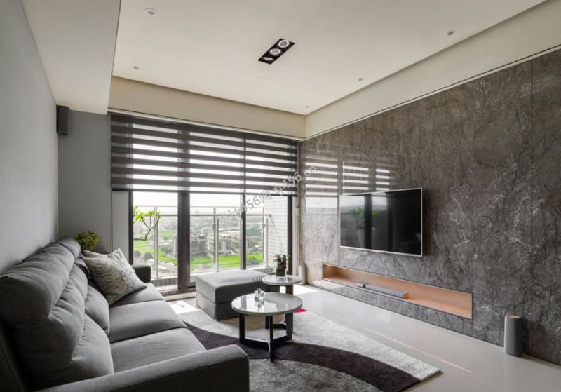 126平现代风格三居室客厅背景墙装修设计效果图