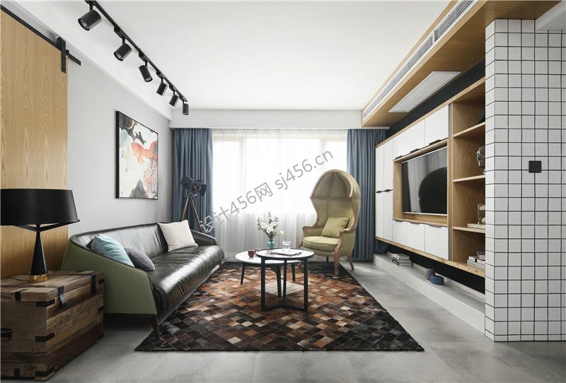 北欧风格118平三居室客厅电视背景墙装修设计效果图