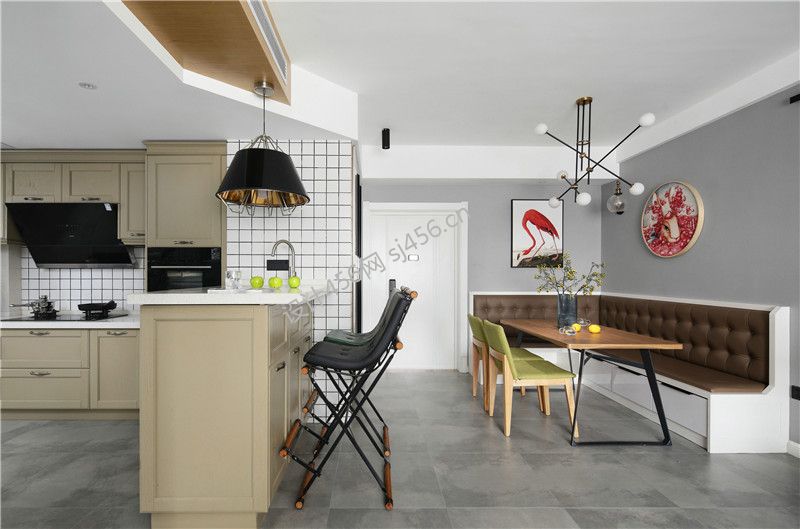 北欧风格118平三居室餐厅卡座装修设计效果图
