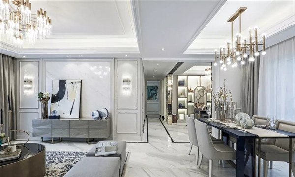 轻奢,实际上是以简约风格为基础,摒弃一些如欧式、法式等风格的复杂元素,以更简洁的、硬朗的直线条代替。
