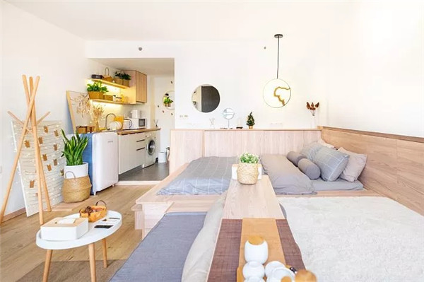 榻榻米是日式装修中最常见的床,功能性强,有足够的储物空间。