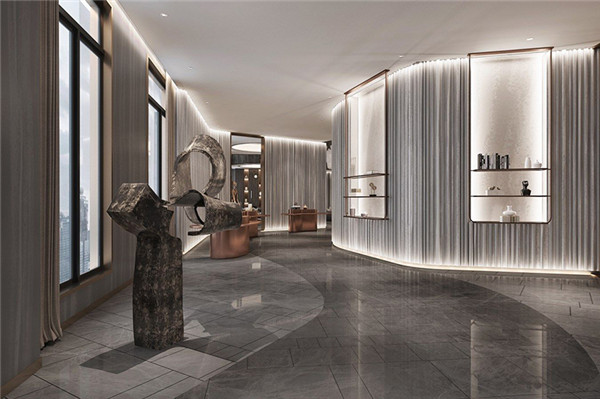 店铺装修内部的光线十分重要,要展现商品的美好。注意店内的灯光均匀分布,从商品的立体感、质感和色彩等众多方面给顾客良好的视觉感受。室内灯光一般会通过多种灯光共同搭配营造出温馨舒适的氛围环境。
