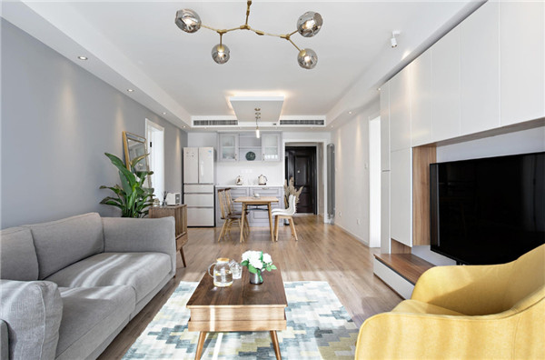 本案例是用米白和深灰色墙面的深浅变化,带来层次感和对比。运用色彩及细节装饰,将北欧的简约与现代风格进行全新的诠释。这套案例原户型就很方正,经过设计师加以修改装饰,整个家就像锦上添花了一样。