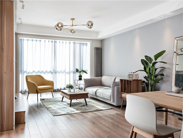 纹理自然的木质地板,洁净的淡色墙面,线条感的吊灯,打造出最为纯净舒适的北欧风情。