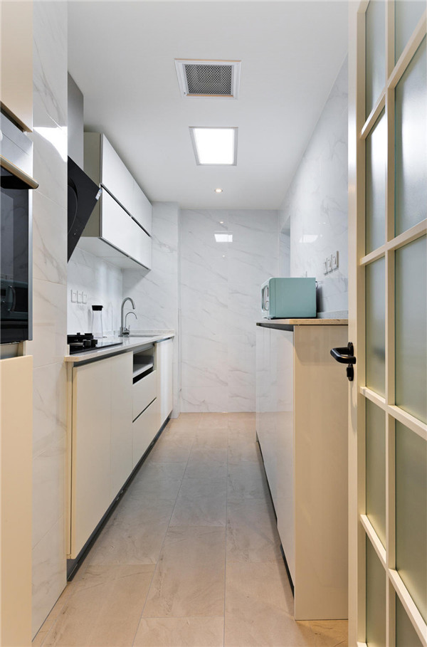 厨房橱柜采用的是白色柜体带来洁净清透的视觉效果。做出来的饭也会特别香。