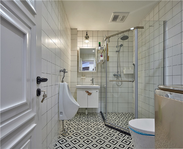 浴室,采用干湿隔离的设计,方便极了。加上不锈钢门框,透明的隔离,制造出视觉层次感,五金件则加入了不锈钢元素,提升空间品质感。