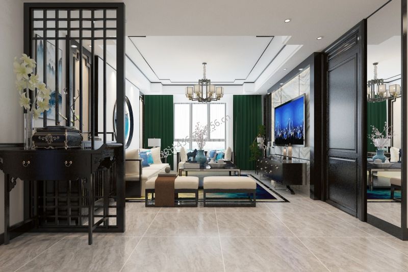 新中式风格153平米平层客厅隔断装修效果图