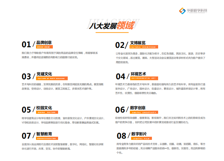 青岛华数数字科技有限公司青岛西海岸新区,注册资本1000万元,公司秉承“创意驱动 科技引领”的发展理念,通过品牌创意策划、空间艺术设计、多媒体创新设计、数字体验技术开发、虚拟现实技术开发等多种形式,广泛服务于企业品牌策划、政府展示宣传、党史馆、党建教育基地、校园文化设计、规划馆、科技馆、博物馆、纪念馆、方志馆、校史馆、荣誉室、部队史馆(军史馆)、反腐倡廉展厅、法制教育基地、主题馆、文旅科技、文博展示、办公商业空间艺术设计、园区宣传、地产营销、娱乐互动、多媒体创意开发、影视创意等众多领域。公司拥有创意策划、科技研发、设计施工、运营管理等服务团队。公司是青岛市西海岸企业联合会理事单位,拥有ITSS三级资质、15项软件著作权。公司作为文化创意领域的高科技企业,始终坚持为客户提升价值的服务理念,与客户携手共赢、共享、共发展。