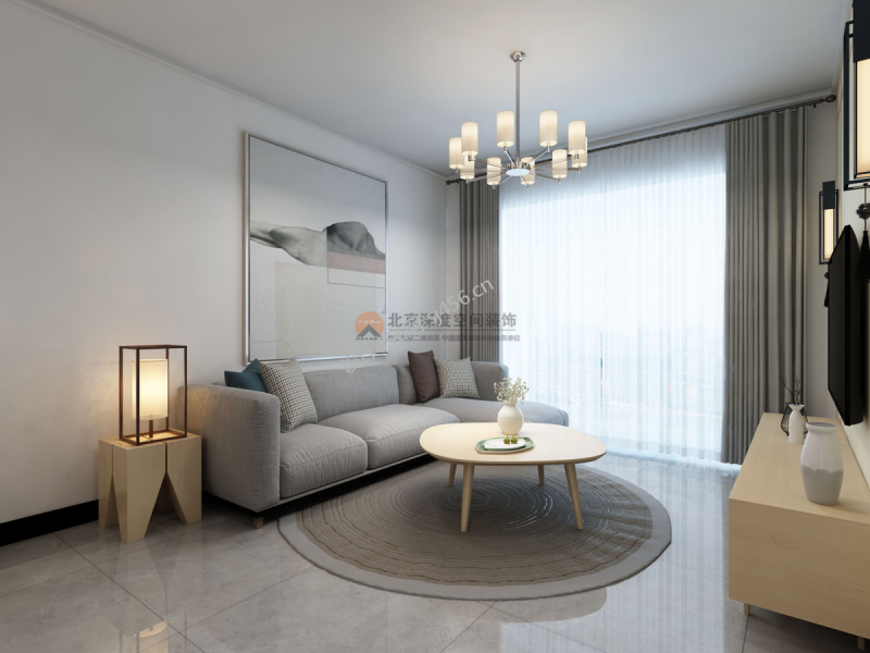 宁越花园70平简约日式风格新房客厅电视墙图片
