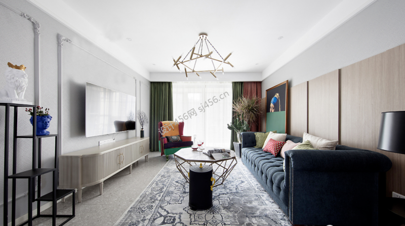 美式风格117平米三室两厅客厅家装效果图