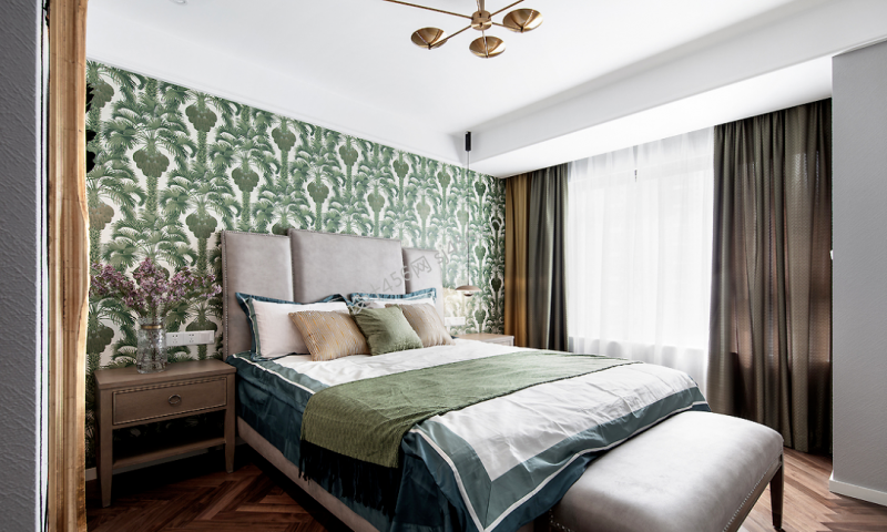 美式风格117平米三室两厅卧室家装效果图