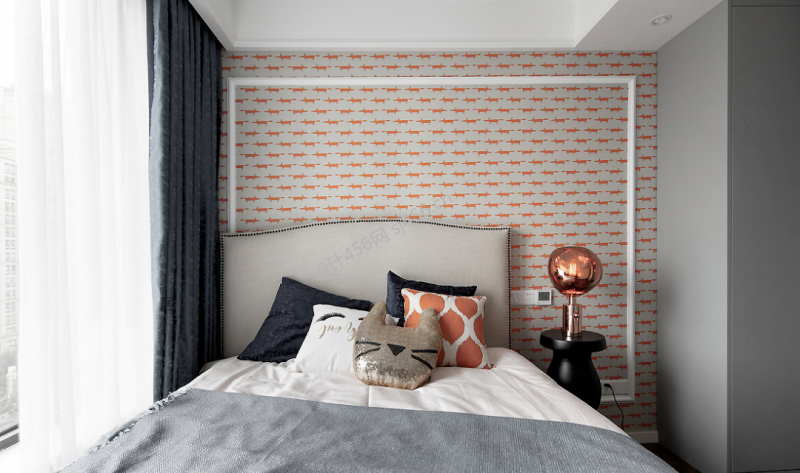 美式风格117平米三室两厅卧室窗帘家装效果图