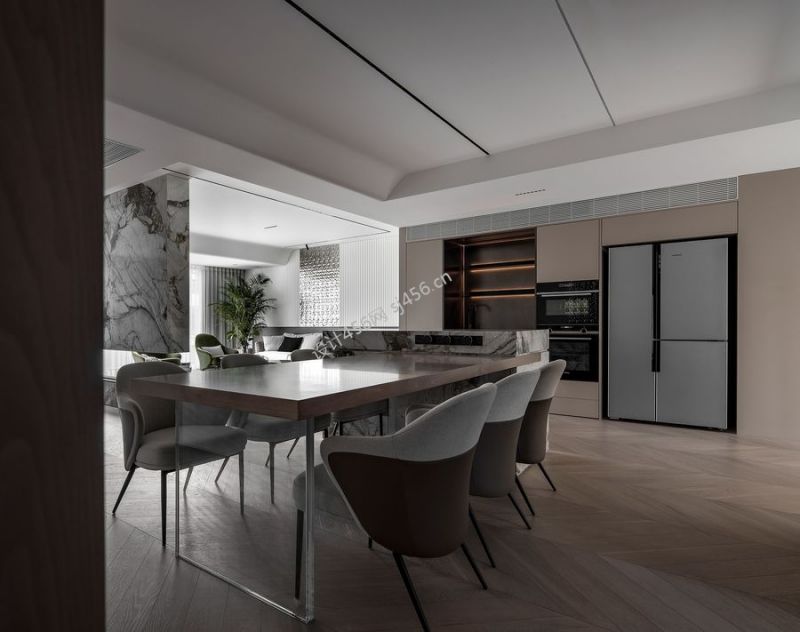 200平现代风别墅饭厅装修案例图