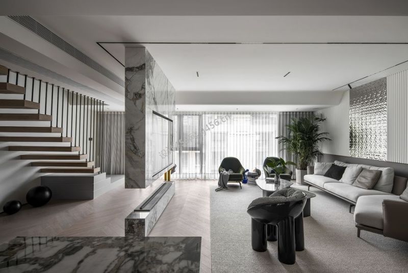 200平现代风别墅客厅楼梯装修效果图