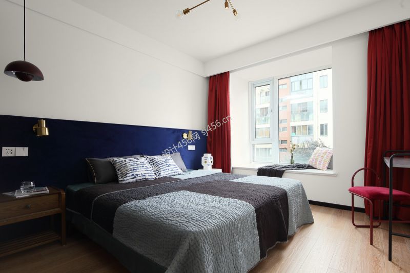 北欧风格126平米三室两厅卧室窗帘装修效果图