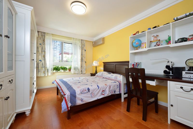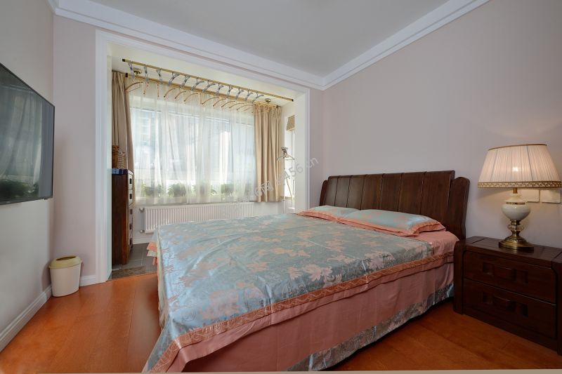 美式风格102平米三室两厅卧室窗帘装修效果图