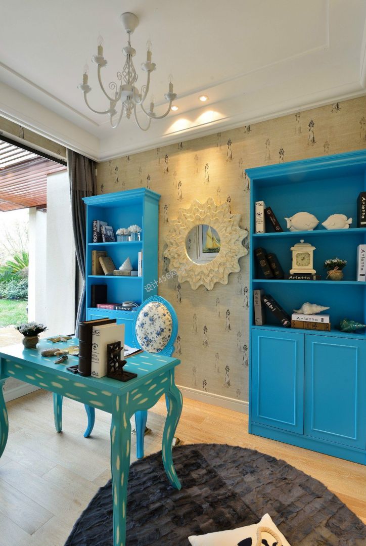 地中海风格110平米三室两厅书房装修效果图