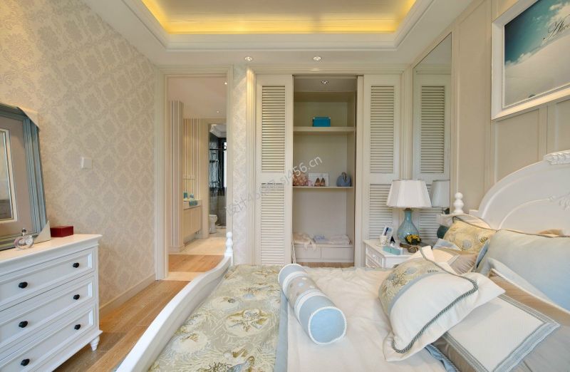 地中海风格110平米三室两厅卧室衣柜装修效果图