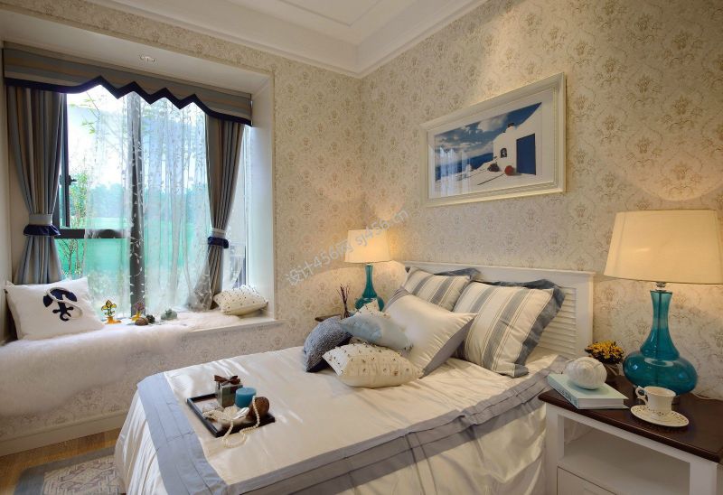 地中海风格110平米三室两厅卧室装修效果图