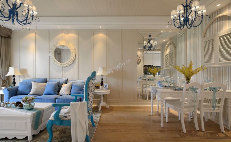 地中海风格110平米三室两厅客厅装修效果图
