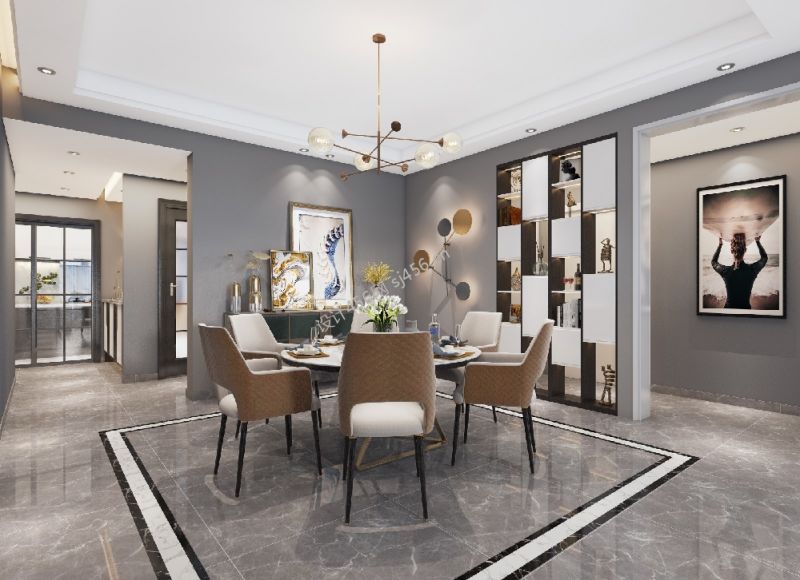 轻奢沉稳现代风格餐厅餐桌装修效果图