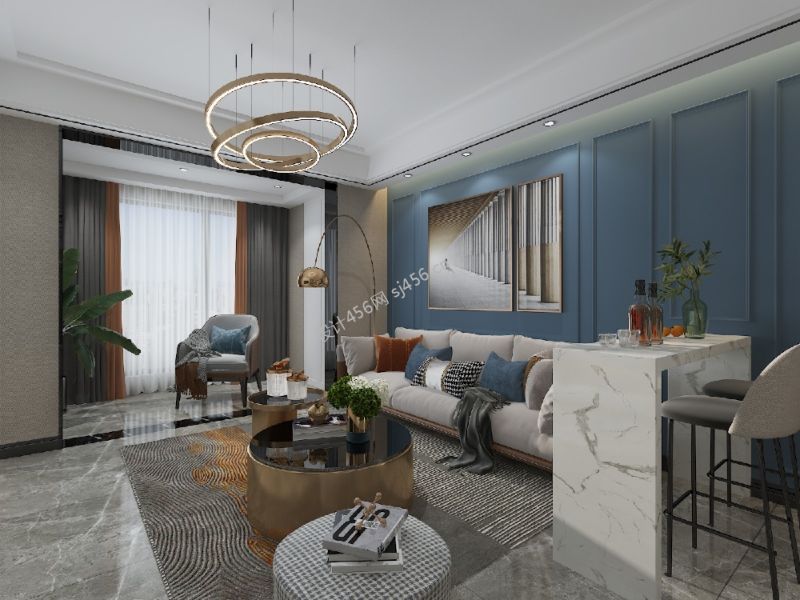 时尚蓝色轻奢风格客厅沙发装修效果图