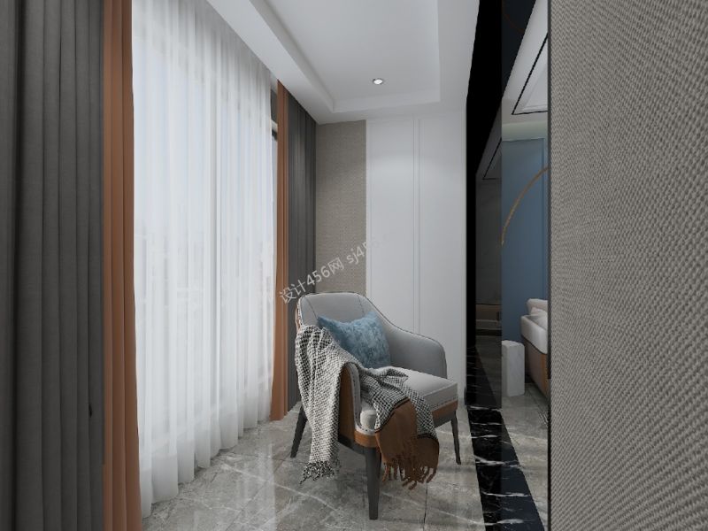 时尚蓝色轻奢风格阳台窗帘装修效果图