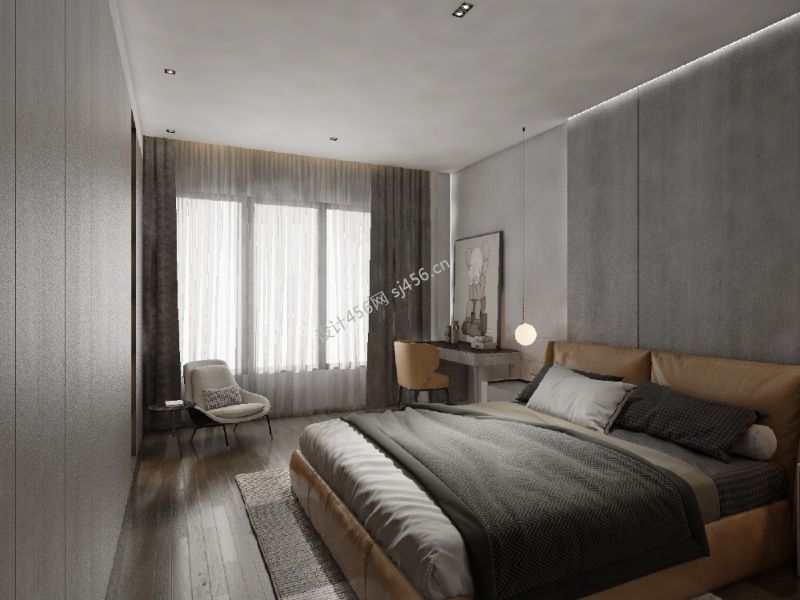 时尚蓝色轻奢风格卧室窗帘装修效果图