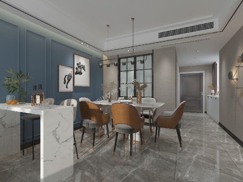 时尚蓝色轻奢风格餐厅餐桌装修效果图