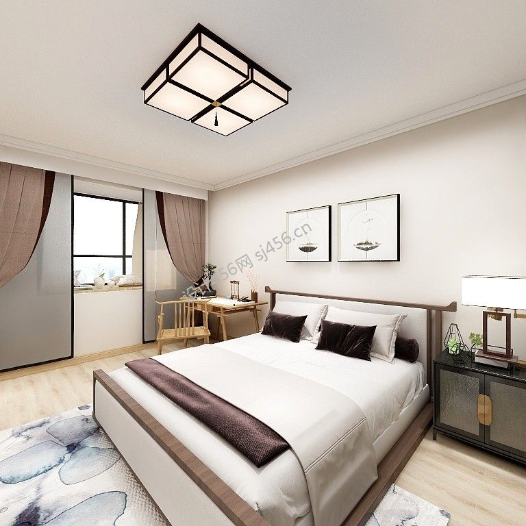 经典气质新中式风格卧室窗帘装修效果图