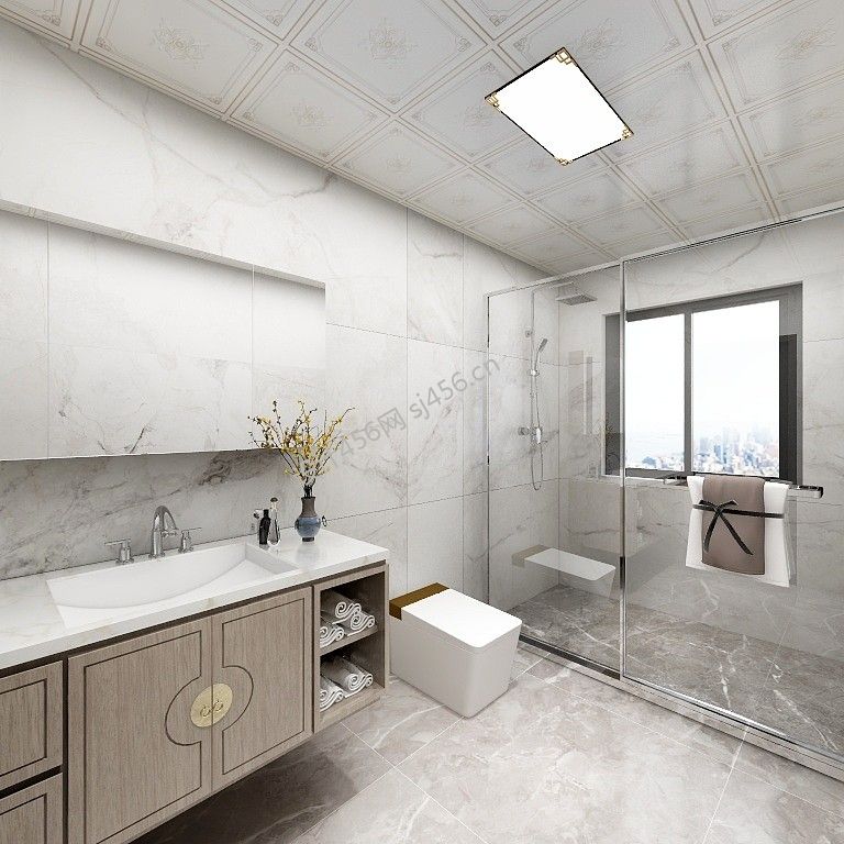 经典气质新中式风格卫生间瓷砖装修效果图