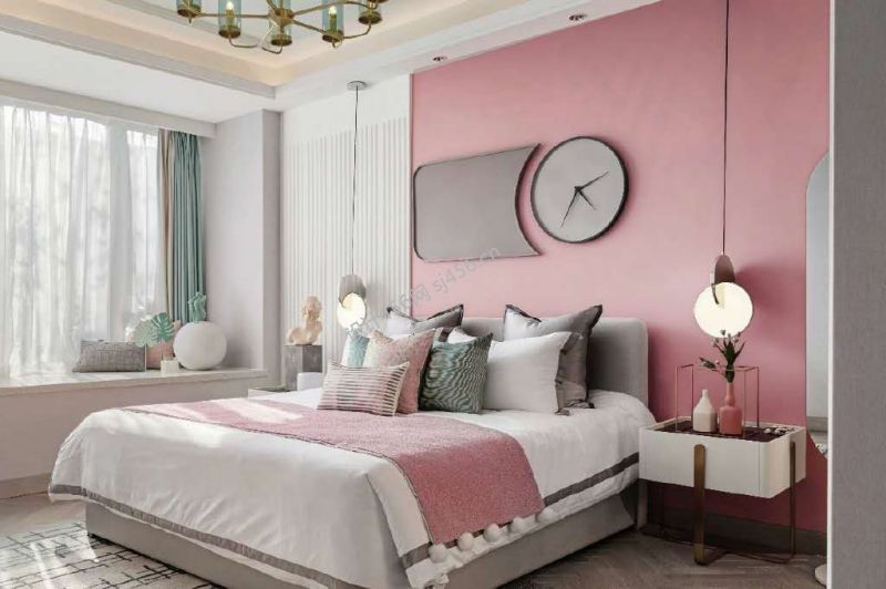 现代简约风135平卧室背景墙效果图