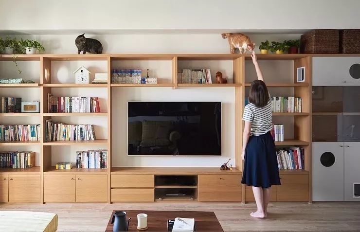 ▲ 整面电视墙都是书架,收纳力Max,还有很多很多喜爱的书。