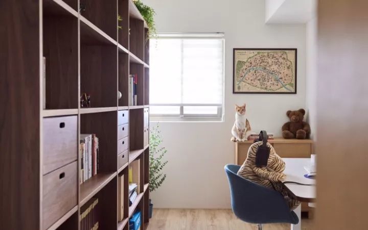 ▲ 超舒适的书房空间,整面墙的书架,满足收纳需求。