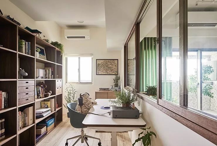 ▲ 玻璃元素的加入,让书房空间更加通透敞亮,配合简单的家具与装饰,简洁又有格调。