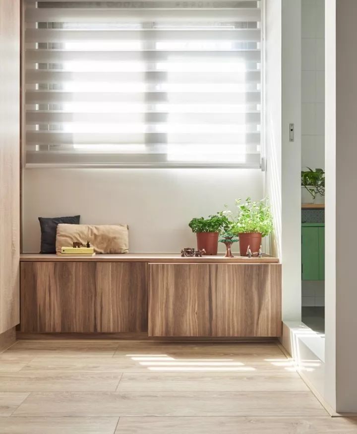 ▲ 一个靠窗的座位提供了一些隐蔽的储存空间。