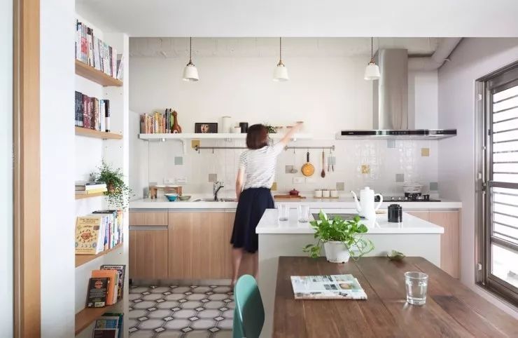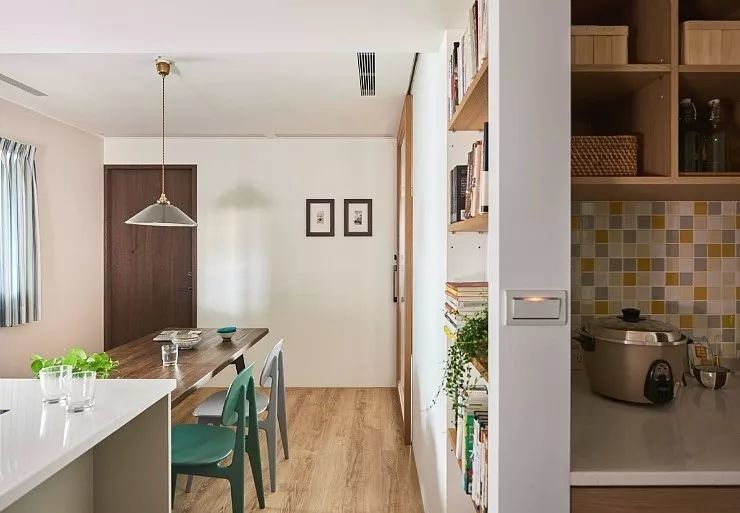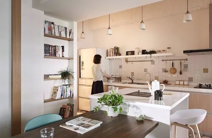 ▲ 开放式书架是另一种让你意想不到的设计,闲时在餐桌上小读也是极好的。