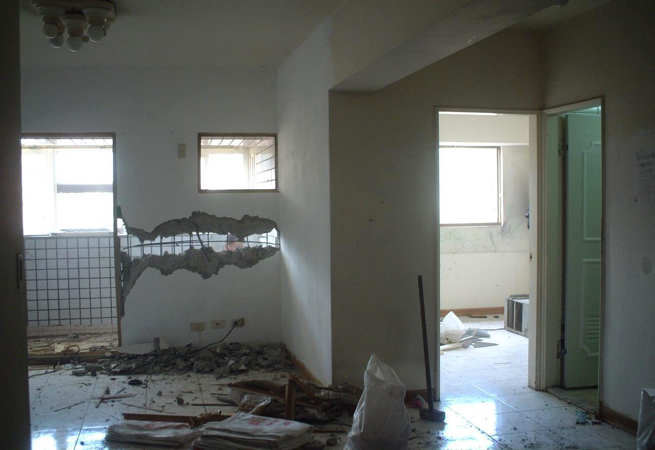 四、还有一件事情必须要和施工师傅先说好,那就是拆墙完必需要将地面的连接处处理平整,不能存在凹凸不平等现象。另外,有钢筋裸露的地方也必须要切除掉,方便后期施工。